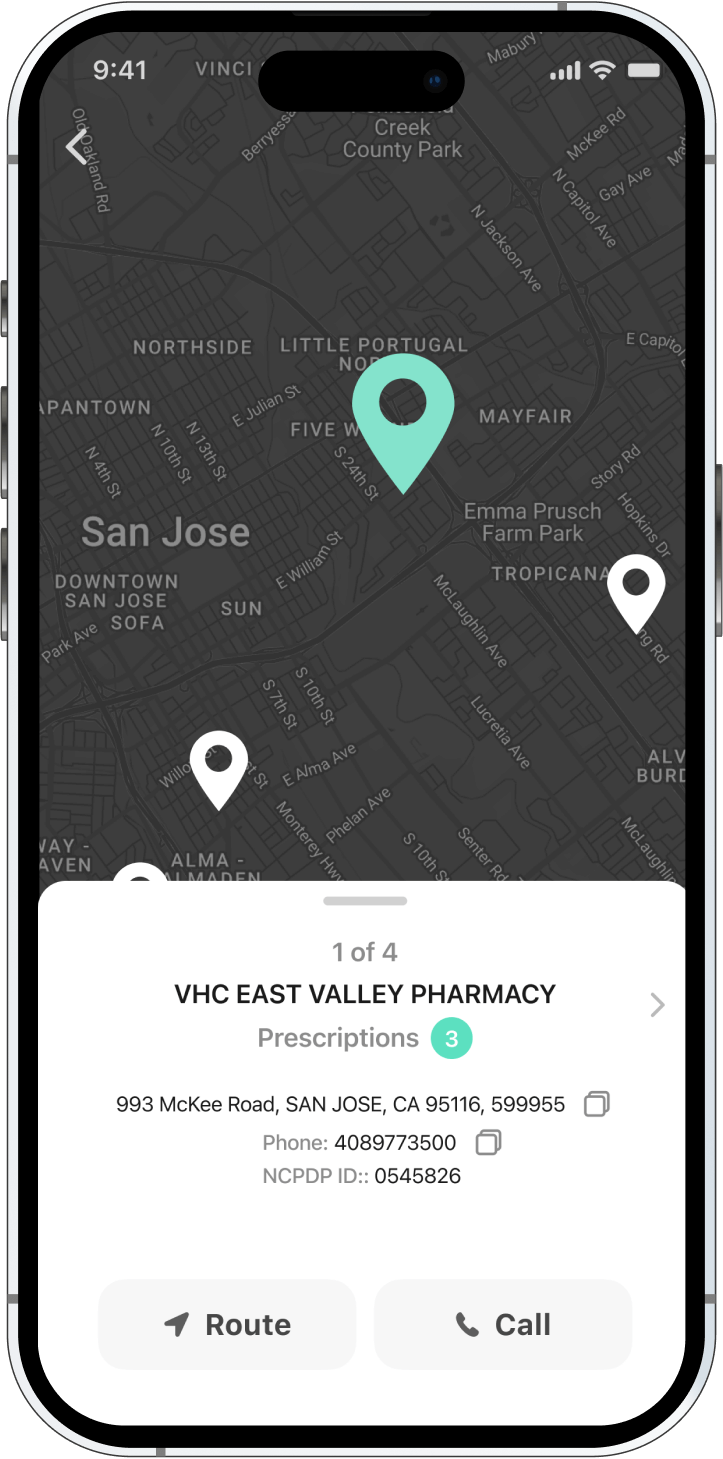 Discover the closest pharmacies at a glance. Our integrated map taps into real-time location data to guide you there, no extra hardware needed—just simple, smart navigation at your service.