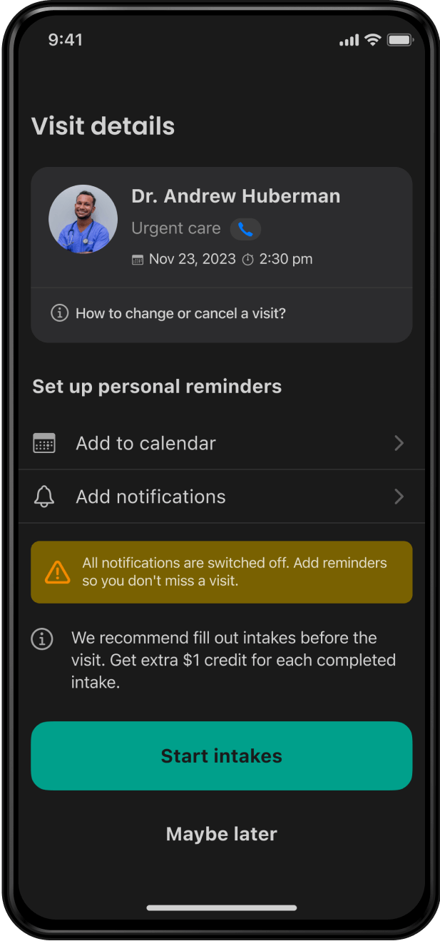 Stay on top of your health schedule with personalized reminders. Opt-in for push notifications, SMS, or emails, and receive alerts at times that work best for you.